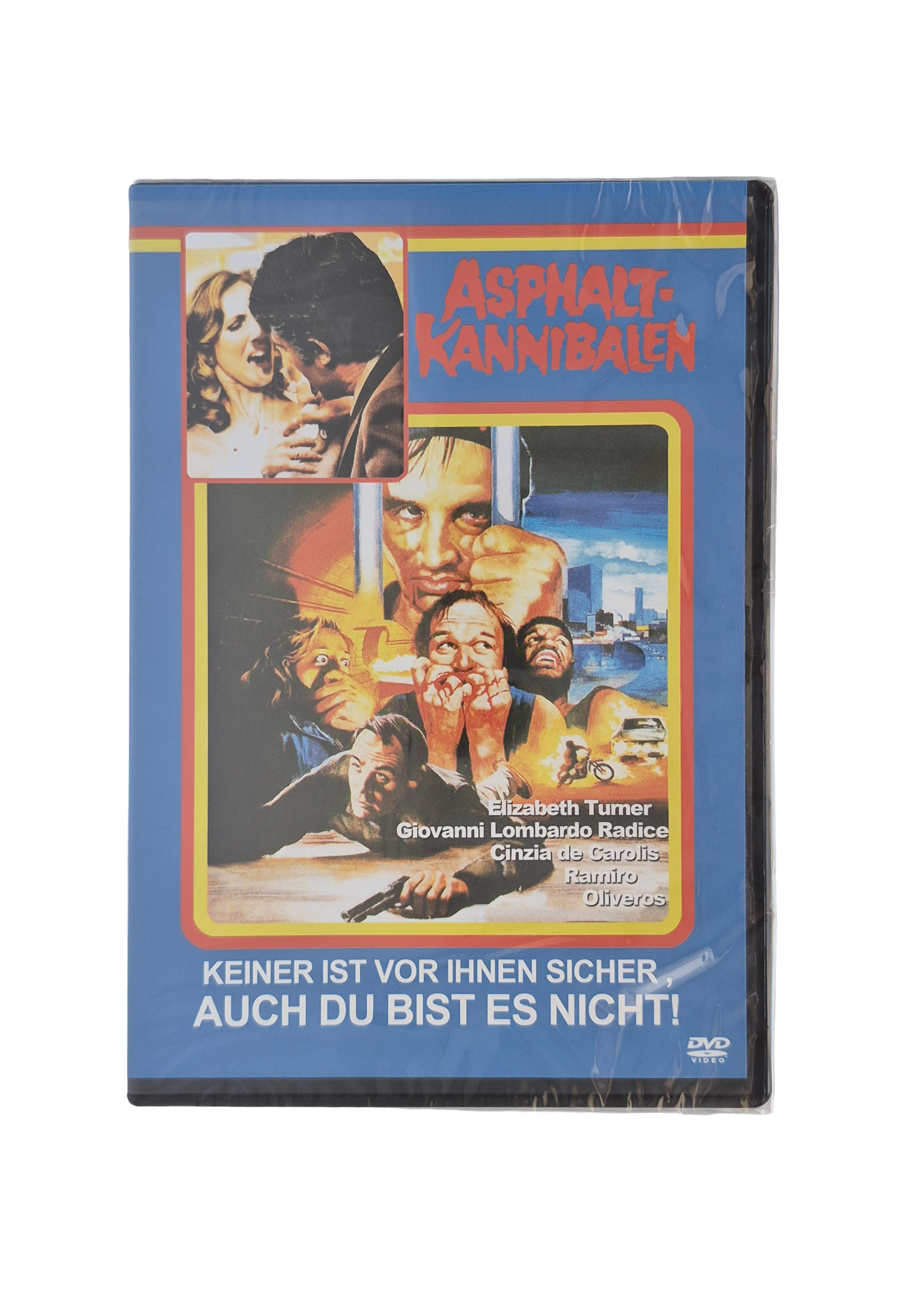 „Asphalt-Kannibalen“ ist ein italienischer Exploitation- und Horrorfilm, der eine düstere Geschichte über Gewalt und Kannibalismus in einem modernen Stadtszenario erzählt. Die Handlung dreht sich vermutlich um eine Gruppe skrupelloser Krimineller, die in Extremsituationen vor nichts zurückschrecken, was im intensiven und verstörenden Artwork zum Ausdruck kommt.