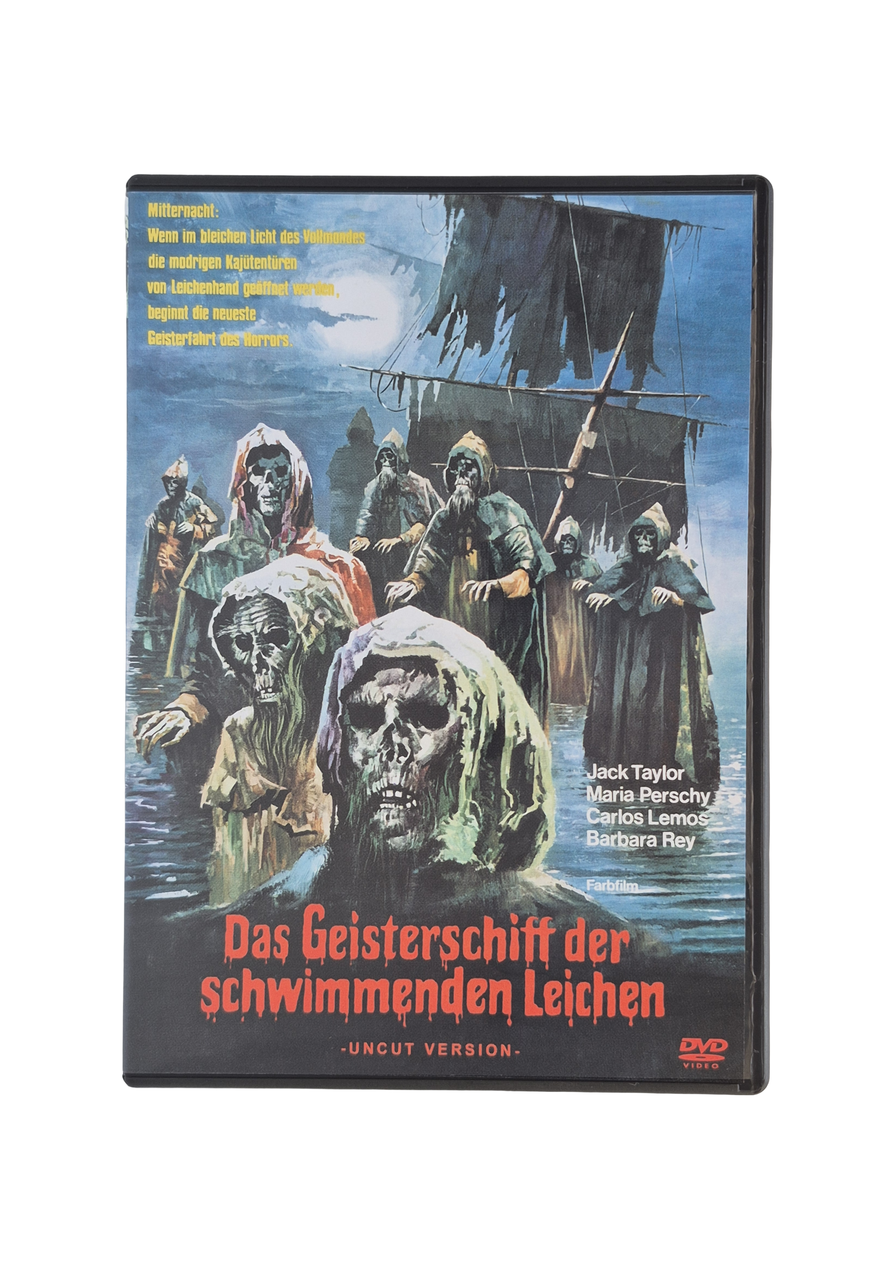 „Das Geisterschiff der schwimmenden Leichen“ entführt die Zuschauer auf eine düstere und unheimliche Reise über das Meer, auf dem ein verfluchtes Schiff mit untoten Seeleuten erscheint, sobald das bleiche Licht des Vollmonds auf das Wasser fällt. Der Horrorfilm erzählt von der Begegnung moderner Menschen mit der unheimlichen Crew verdammter Geister, die in den Kajüten lauern und Schrecken verbreiten.